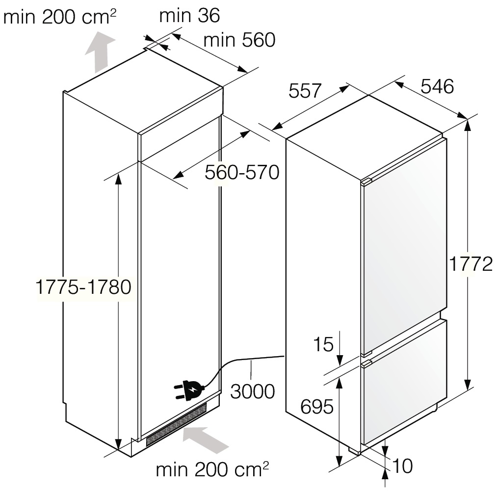 - Максимальная высота ниши для встраивания: 1780 мм.&