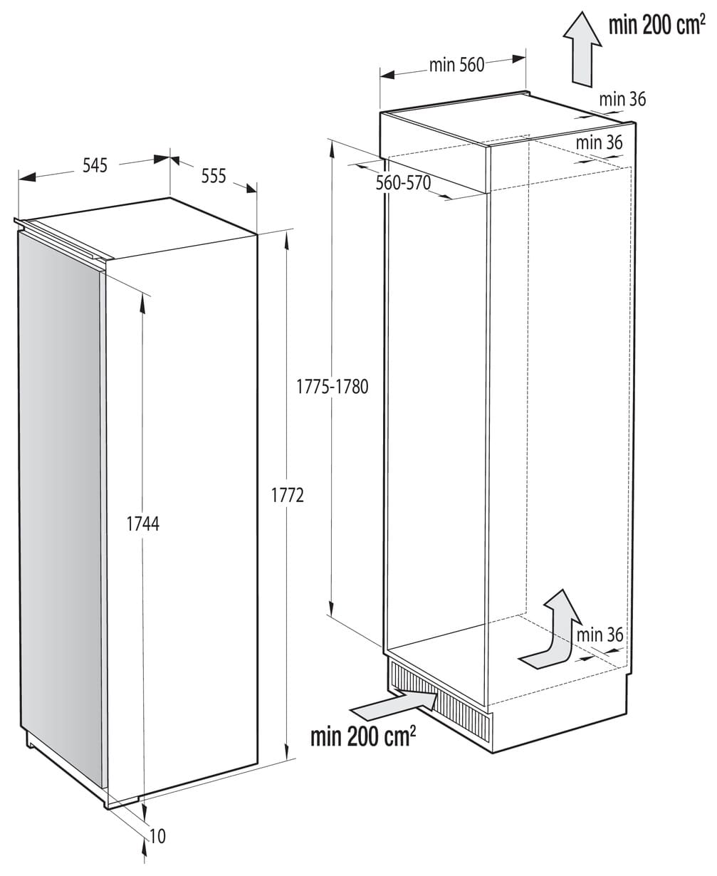 - Размеры ниши для встраивания (ШхВхГ): 560х1775х560 мм.&