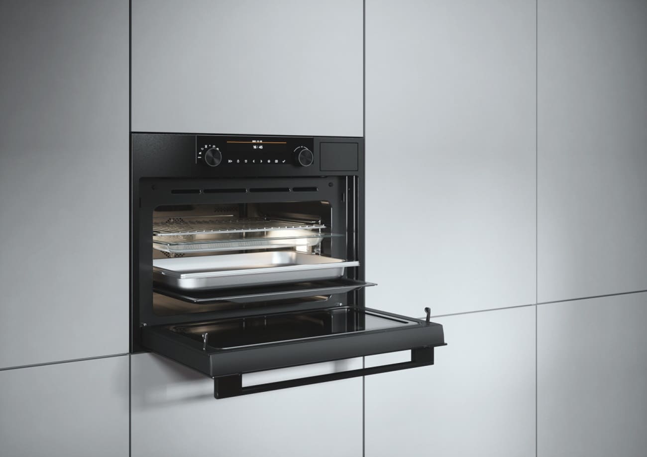 - Режимы работы: "Классический нагрев" (снизу + сверху), "Нагрев сверху", "Нагрев снизу", "Малый гриль", "Большой гриль", "Большой гриль + работа вентилятора", "Нагрев снизу + вентиляционный нагрев", "Вентиляционный нагрев", "Нагрев снизу + работа вентилятора", "Приготовление на пару", "Интенсивный пар", "Нормальный пар", "Малый пар", "Микроволны", "Вентиляционный нагрев + микроволны", "Гриль + микроволны", "Быстрый нагрев духовки", "Подогрев блюд StayWarm", "Подогрев посуды WarmPlate", "Очистка паром AquaClean", "Автоматическое запекание AutoRoast", "Размораживание", "Экоприготовление".&