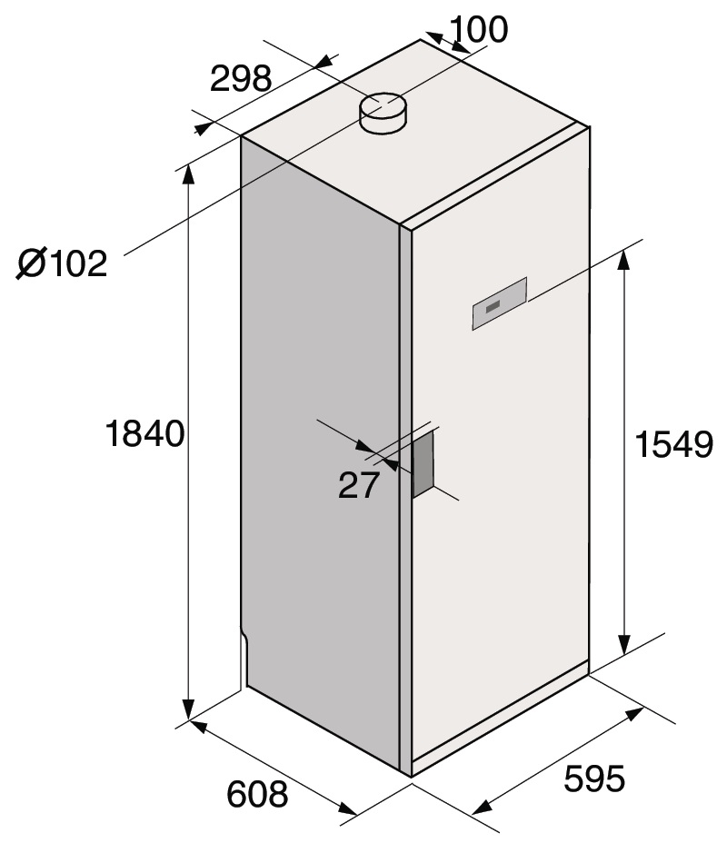 - Размеры прибора (ШхВхГ): 595х1854х608 мм.&