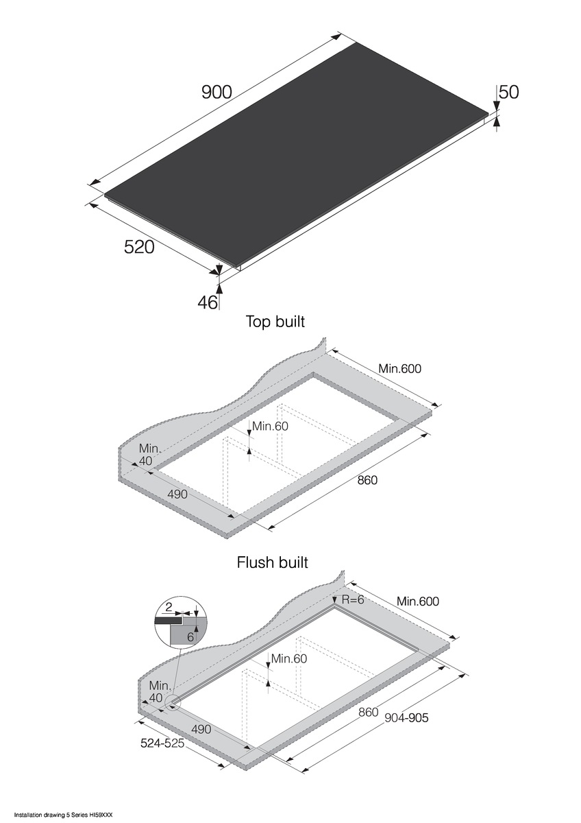 - Размеры ниши для встраивания (ШхВхГ): 860х70х490 мм.&