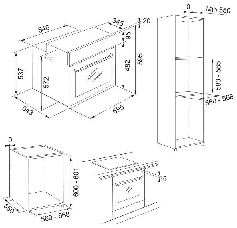 - Размеры прибора (ШxВxГ): 595x595x564 см.&