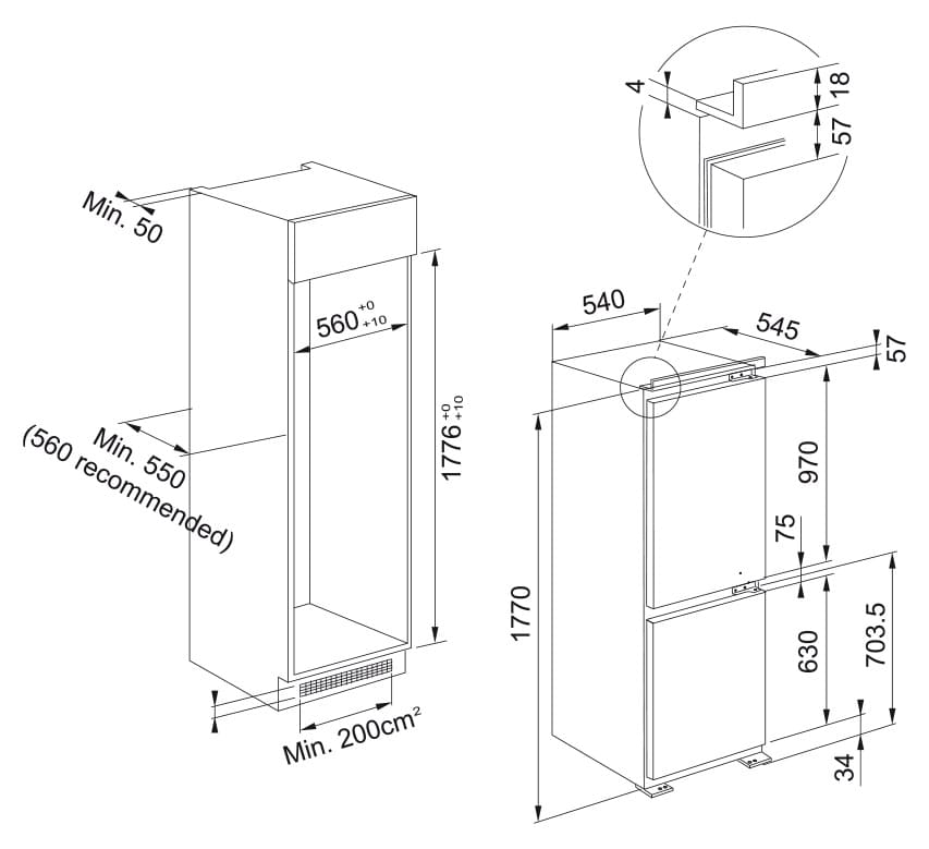 - Размеры для встраивания (ШхВхГ): 540х1770х545 мм.&