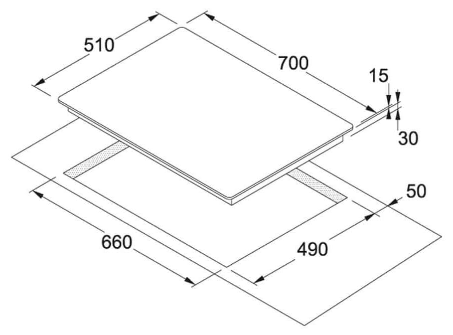 - Размеры выреза (ШхГ): 660х490 мм.&