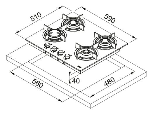 - Размеры выреза для монтажа (ШхГ): 560х480 мм.&
