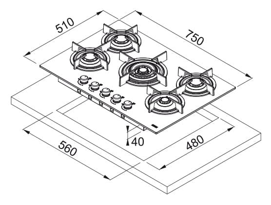 - Размеры выреза для монтажа (ШхГ): 560х480 мм.&