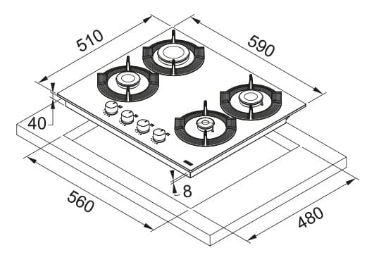 - Размеры выреза для монтажа (ШхГ): 560х480 мм.&