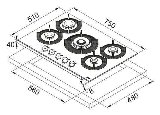 - Размеры выреза для монтажа (ШхГ): 560х480 мм.&