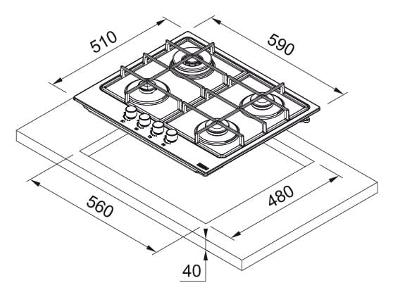 - Размер выреза для монтажа (ШхГ): 560х480 мм.&