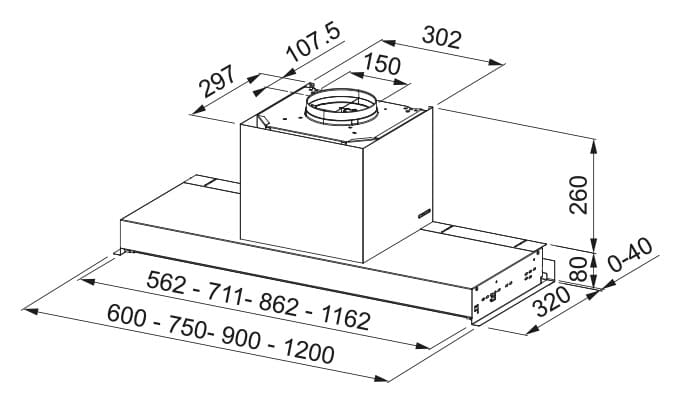- Рекомендуемая высота расположения над варочной поверхностью: 53 см от газовой варочной панели, 41 см от электрической варочной панели.&