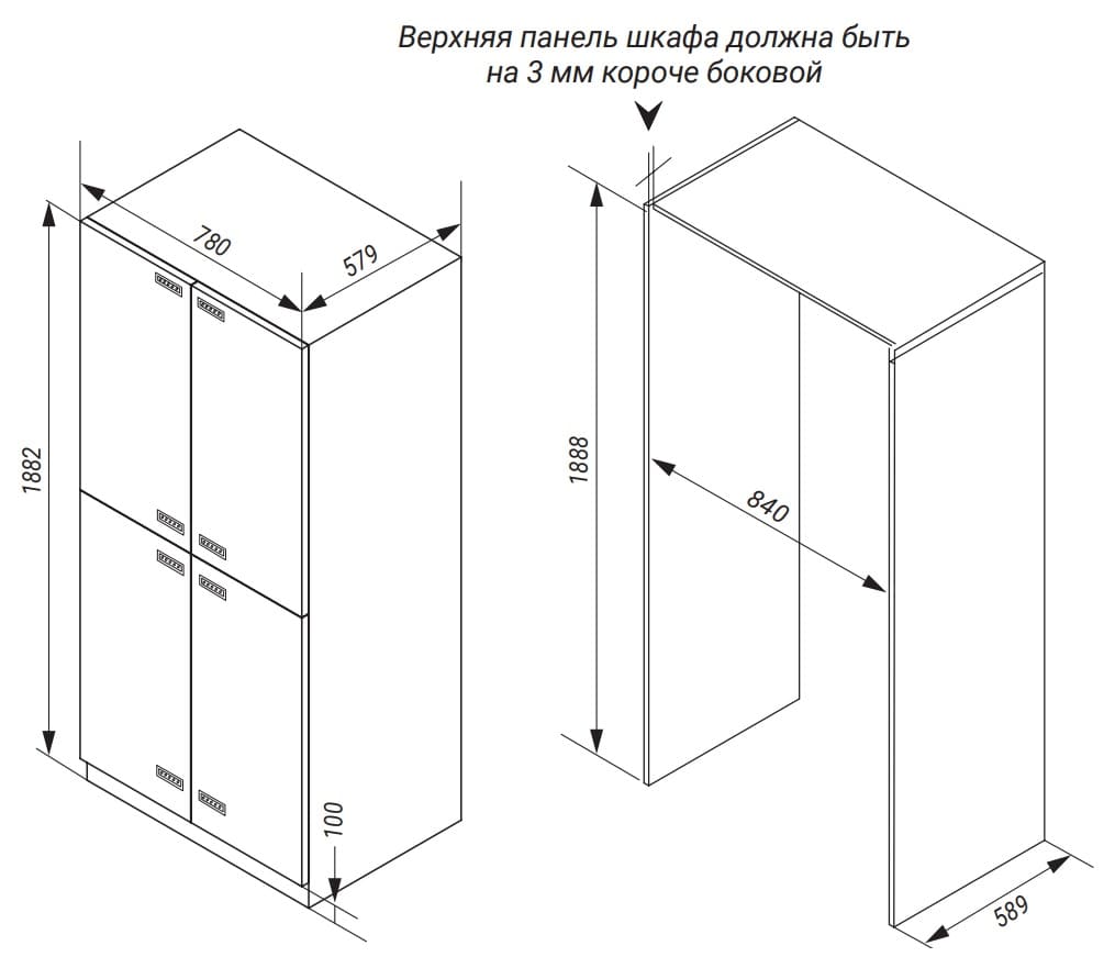 - Размеры прибора (ШхВхГ): 780х1882х579 мм.&