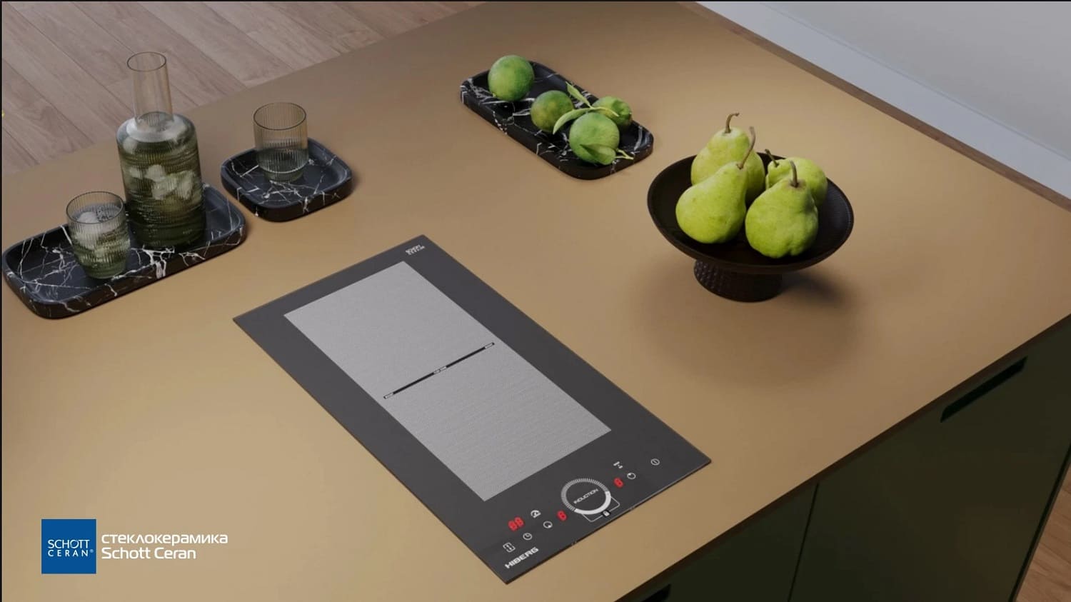- Материал варочной поверхности: стеклокерамика Schott Ceran.&