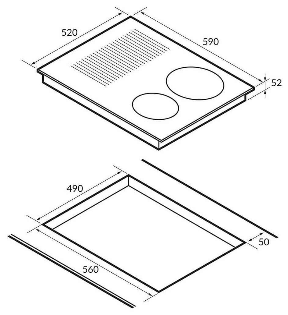 - Размеры прибора (ШхВхГ): 590х52х520 мм.&