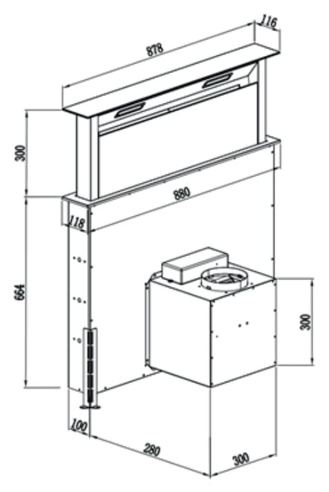 - Габариты ниши встраивания внутренней части вытяжки (ШхВхГ): 880х664х380 мм.&