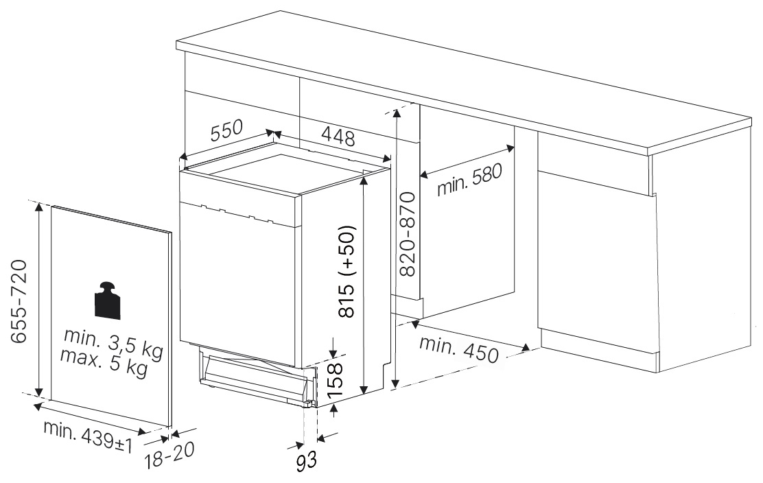 - Размеры прибора (ШхВхГ): 448х815-865х550 мм.&