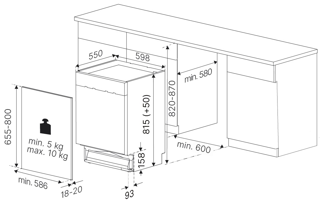 - Размеры прибора (ШхВхГ): 598х815-865х550 мм.&