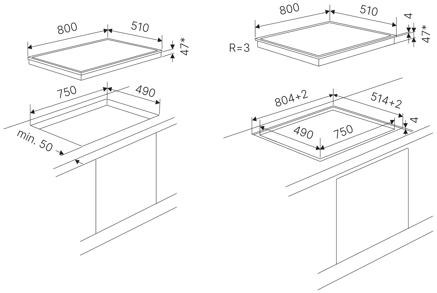 - Размеры ниши для встраивания: 750х490 мм.&