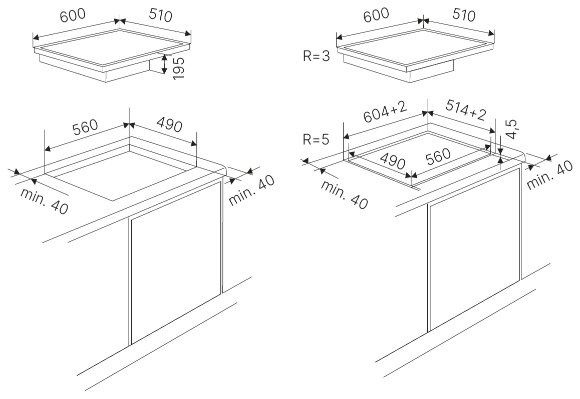 - Размеры прибора (ШхВхГ): 600х195x510 мм.&