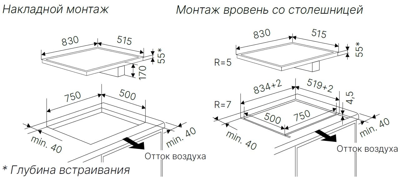- Размеры прибора (ШхГ): 830х515 мм.&