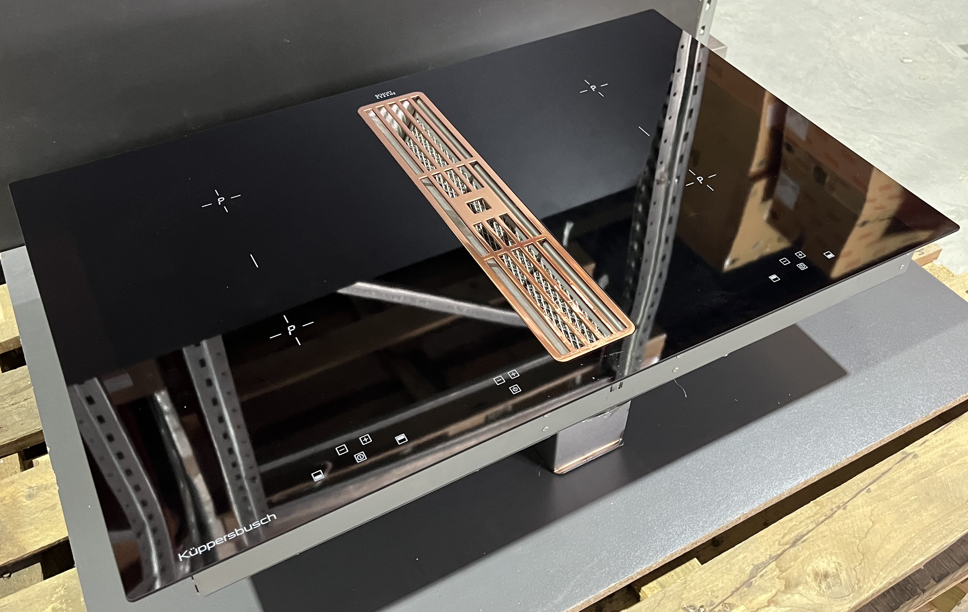 - Вентилятор вытяжки располагается у основания кухонного шкафа.&