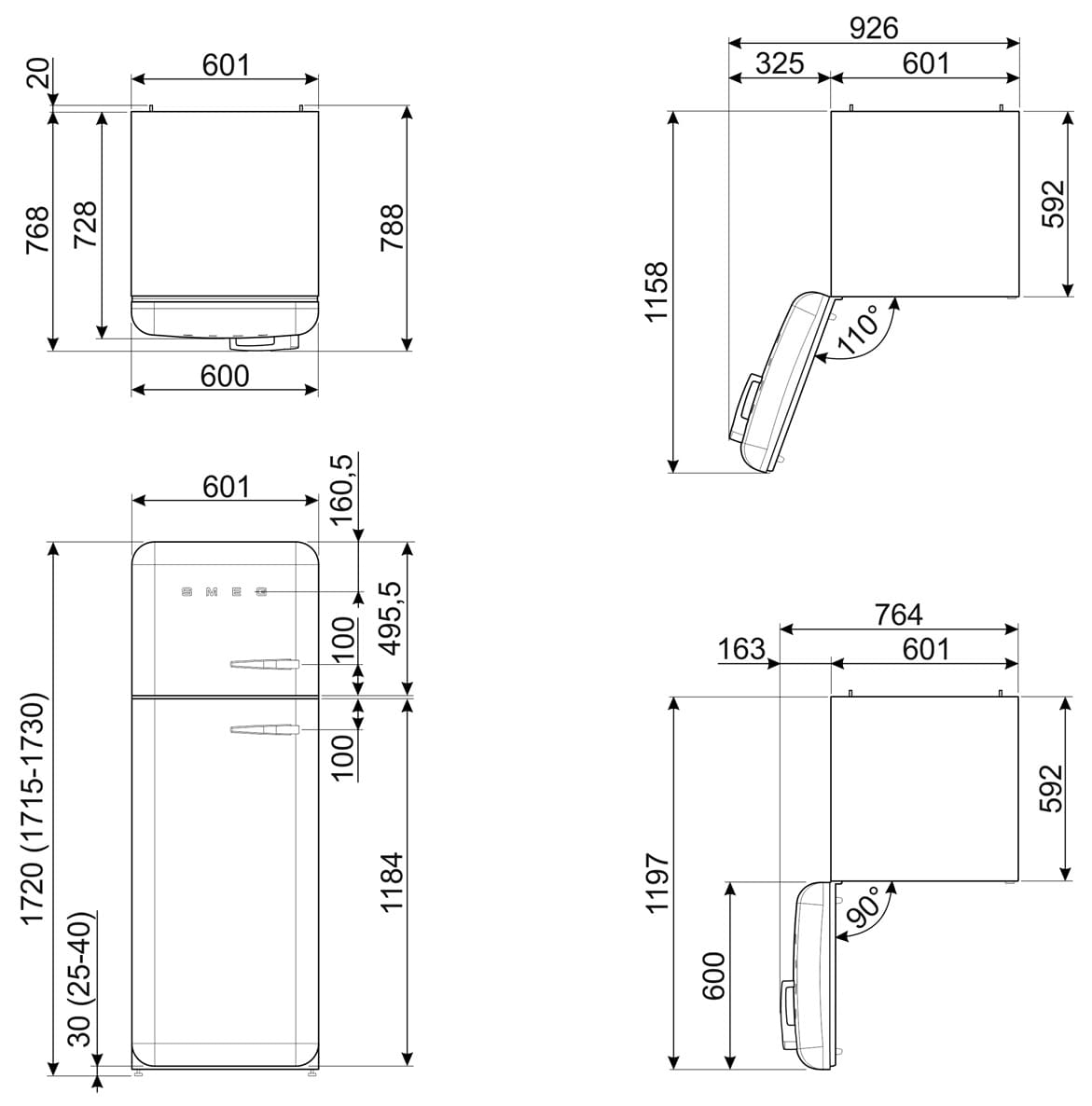 - Размеры прибора (ШxВxГ): 600х1720x728 мм.&
