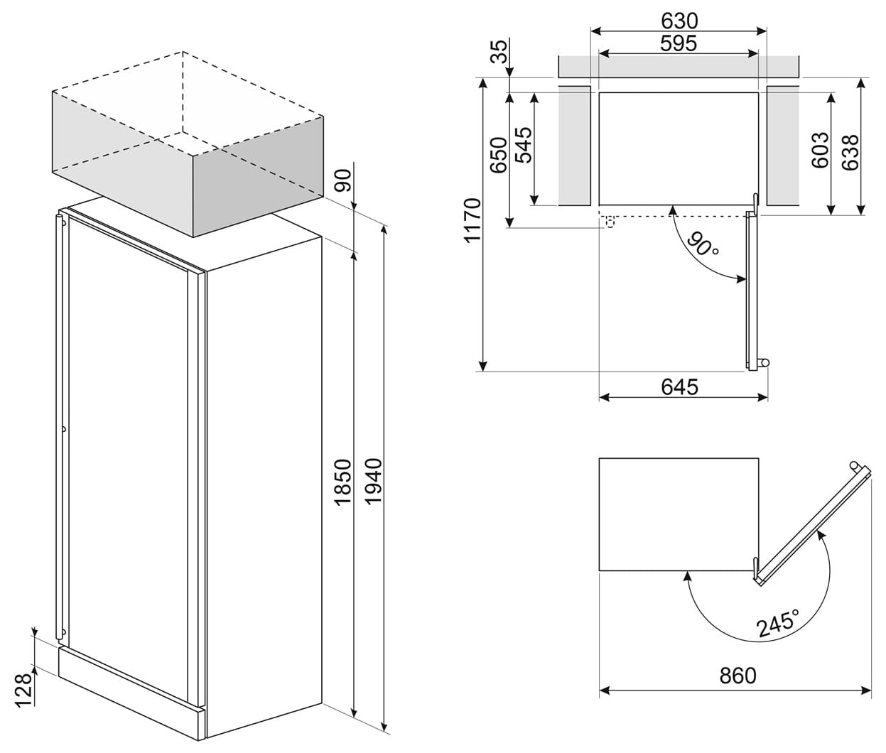 - Размеры прибора (ШхВхГ): 595х1850x595 мм.&