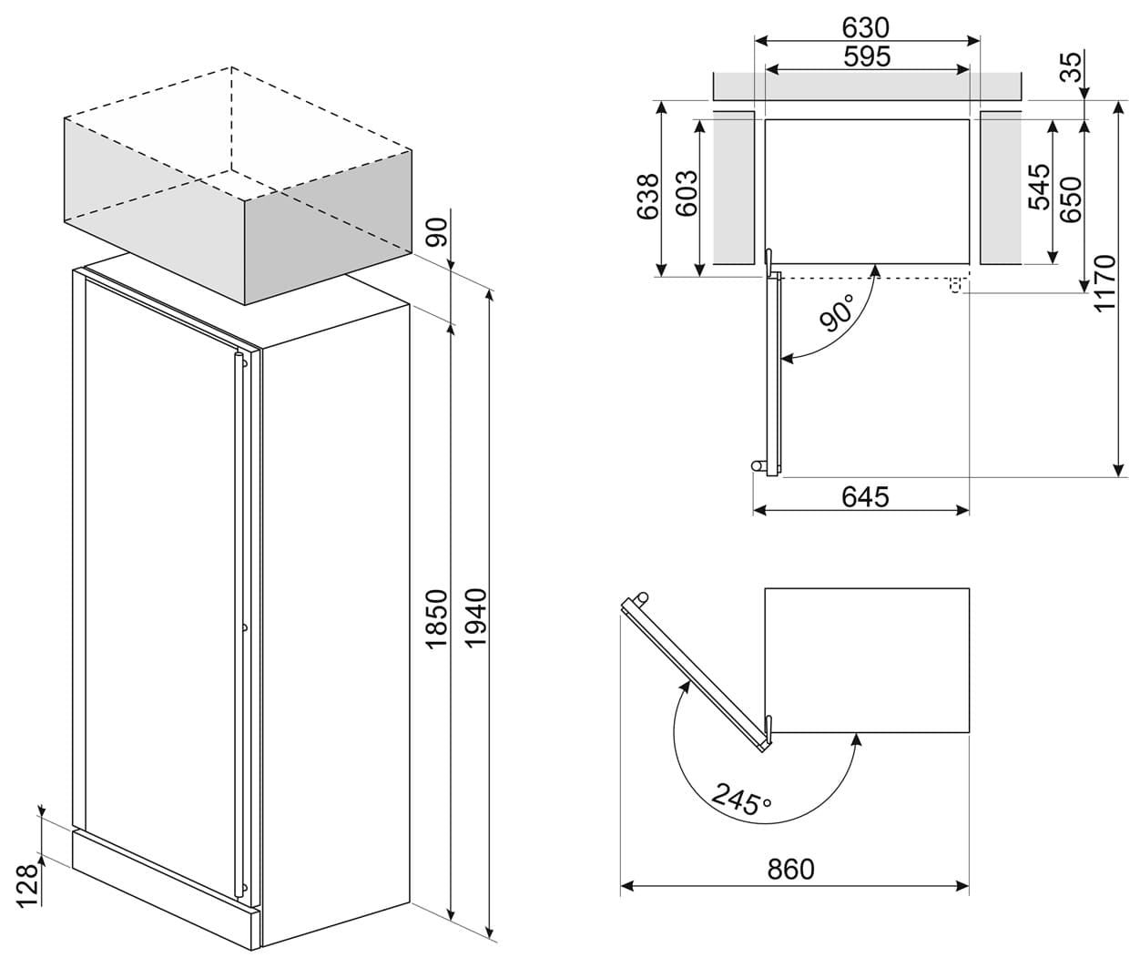 - Размеры прибора (ШхВхГ): 595х1850x595 мм.&