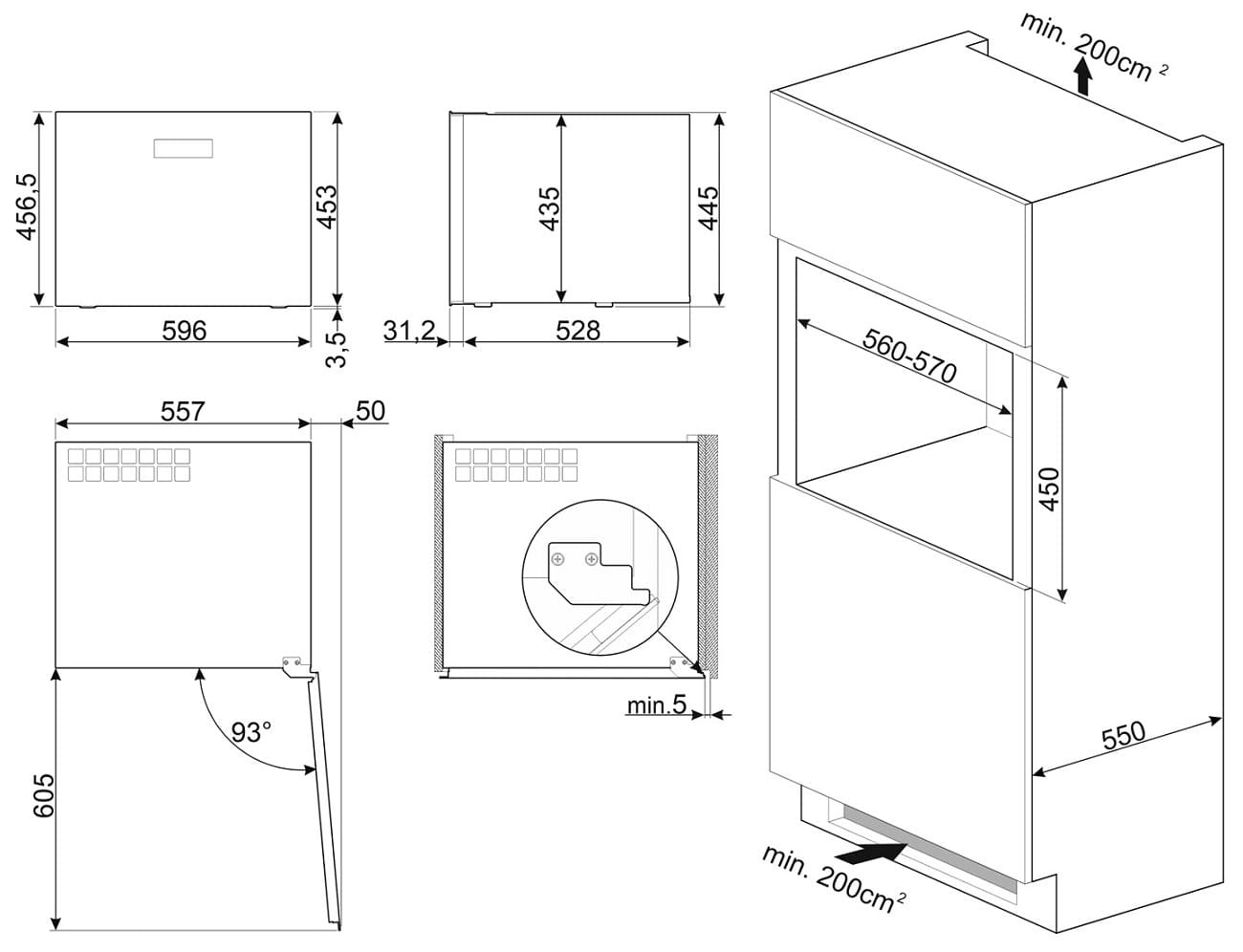 - Размеры прибора (ШхВхГ): 596х457x560 мм.&