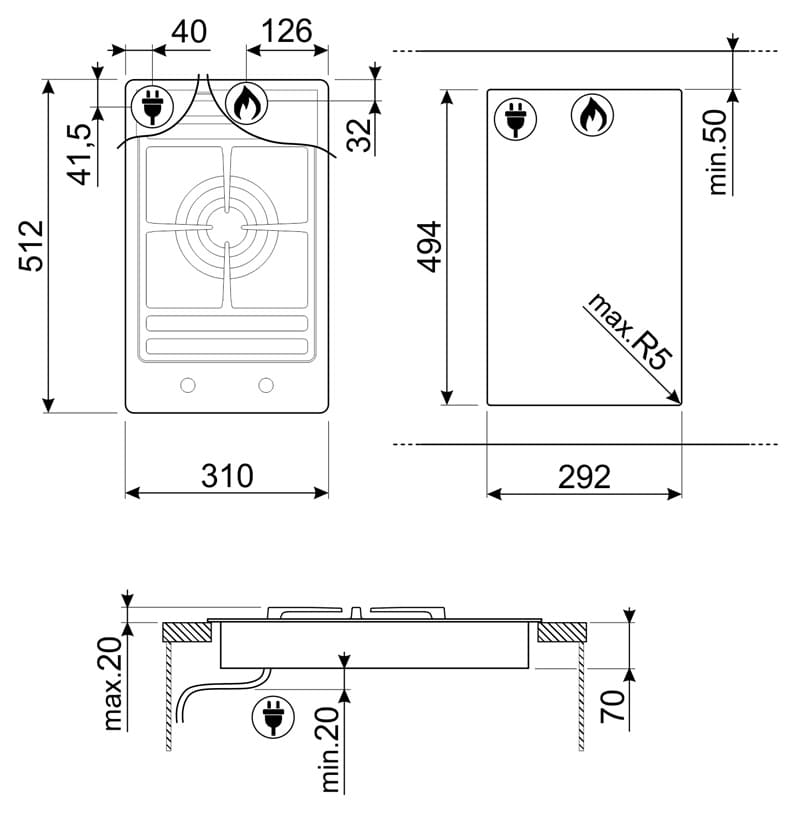 - Размеры выреза для монтажа (ШхГ): 292х494 мм.&
