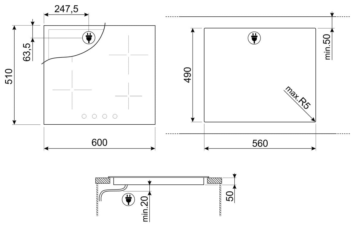 - Размеры выреза для монтажа (ШхГ): 560х490 мм.&