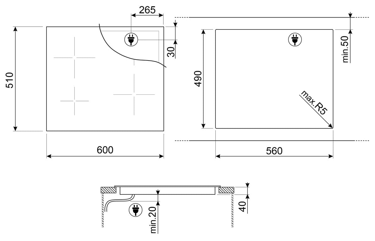 - Размеры выреза для монтажа (ШхГ): 560х490 мм.&