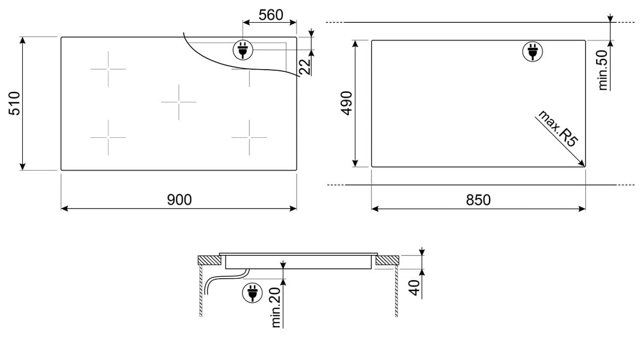 - Размеры выреза для монтажа (ШхГ): 850х490 мм.&