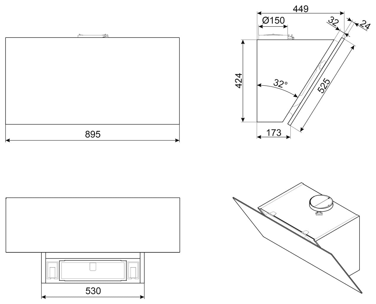 - Размеры прибора (ШхВхГ): 895х459x439 мм.&