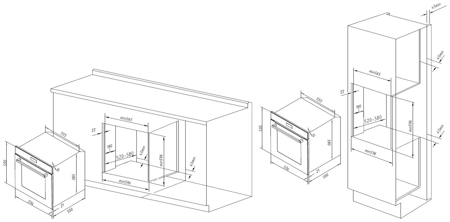 - Размеры ниши для встраивания (ШхВхГ): 565х590х560 мм.
