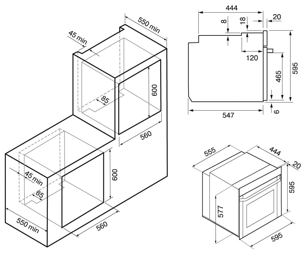 Размеры ниши для встраивания (ШхВхГ): 560х600х550 мм.