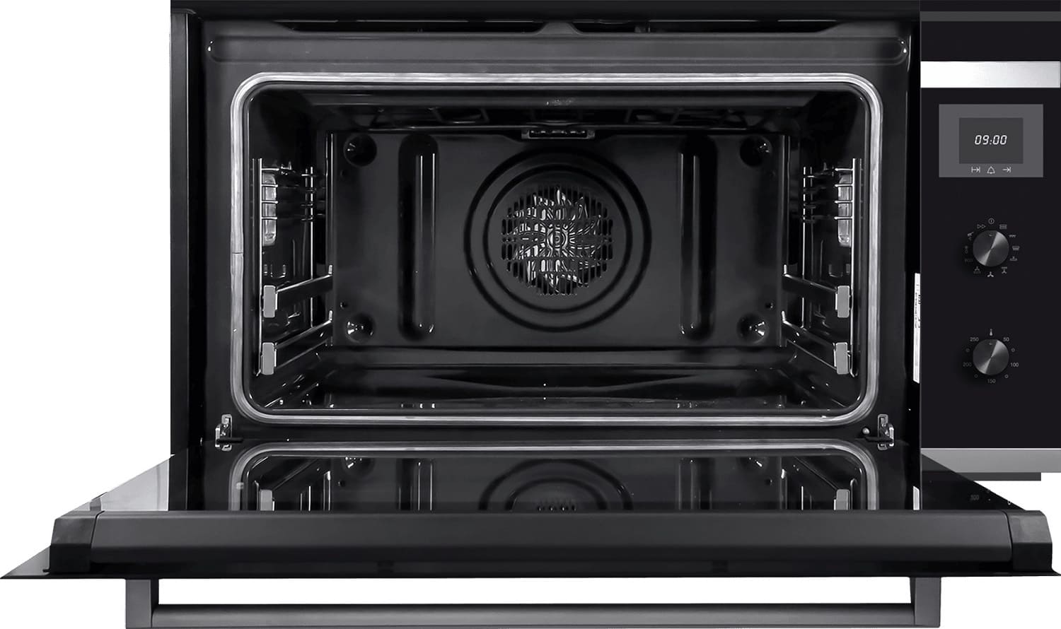 - Полностью стеклянная внутренняя поверхность дверцы.