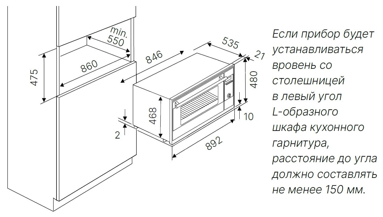 - Размеры ниши для встраивания (ШхВхГ): 860х475х550 мм.