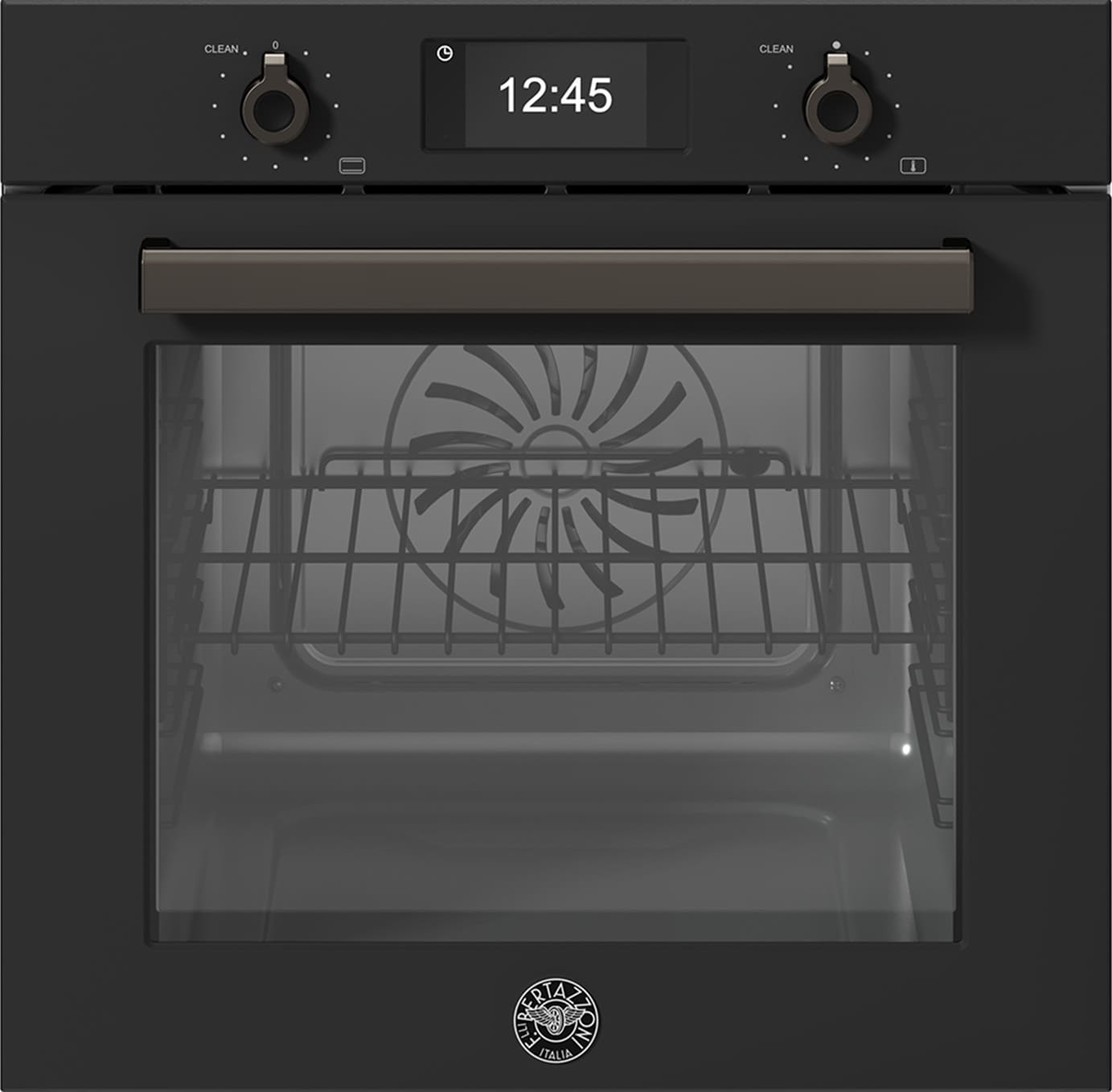 - 11 режимов: нижний нагрев, верхний + нижний нагрев, конвекционный нагрев, гриль, конвекция, гриль с конвекцией, конвекция с нижним нагревом, быстрый преднагрев, пиролиз, "помощник Bertazzoni".