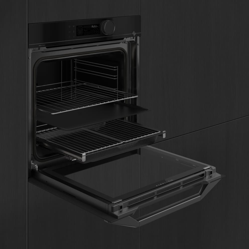 - Дверца с плавным закрыванием «Soft-close». Обеспечивает мягкое и бесшумное закрытие, что увеличивает комфорт при использовании духового шкафа.