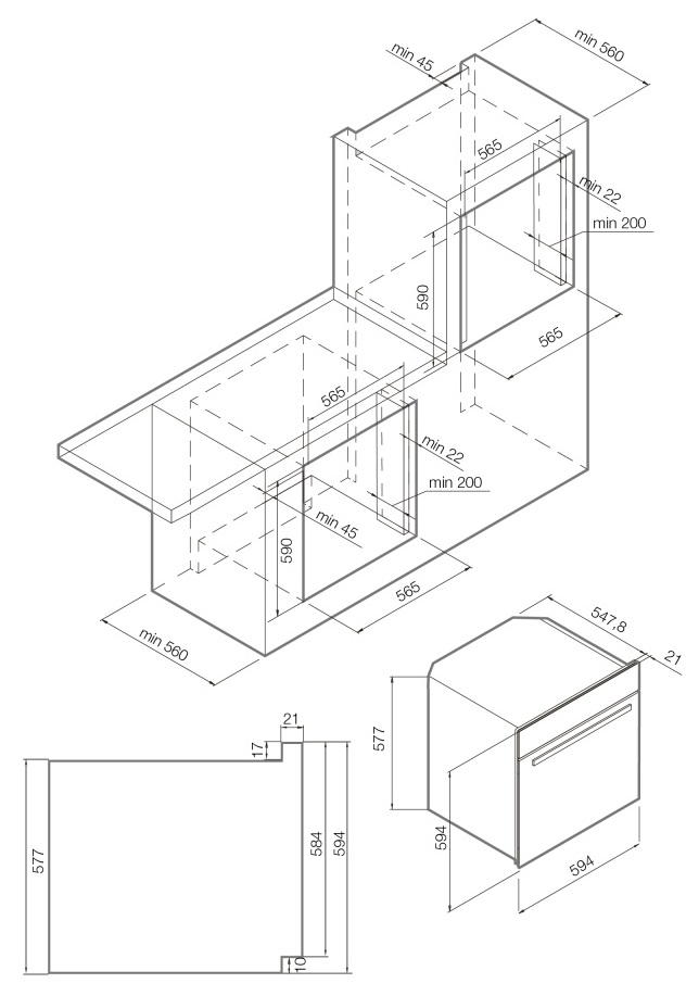 - Размеры ниши для встраивания (ШхВхГ): 565х590х560 мм.