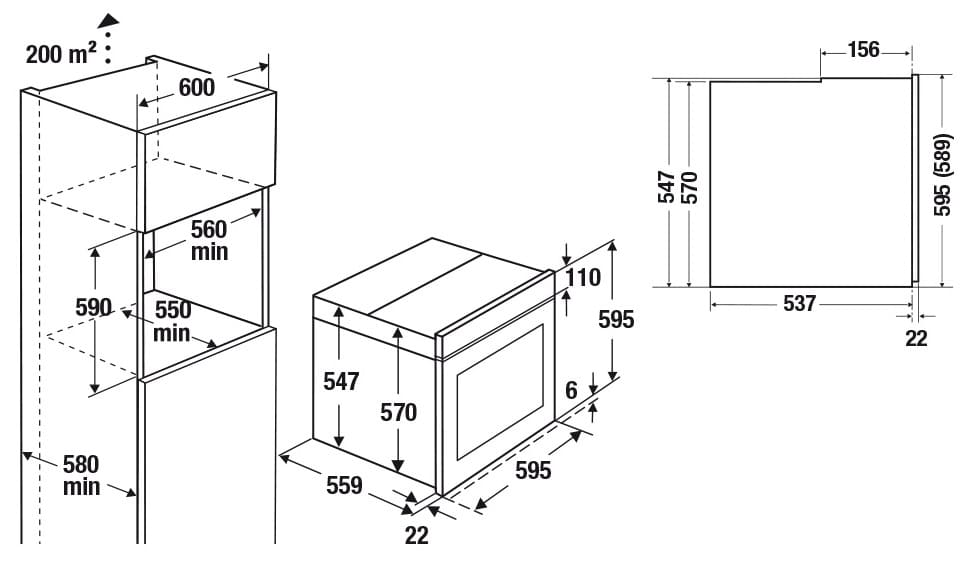 - Размеры ниши для встраивания (ШхВхГ): 560х590х550 мм.