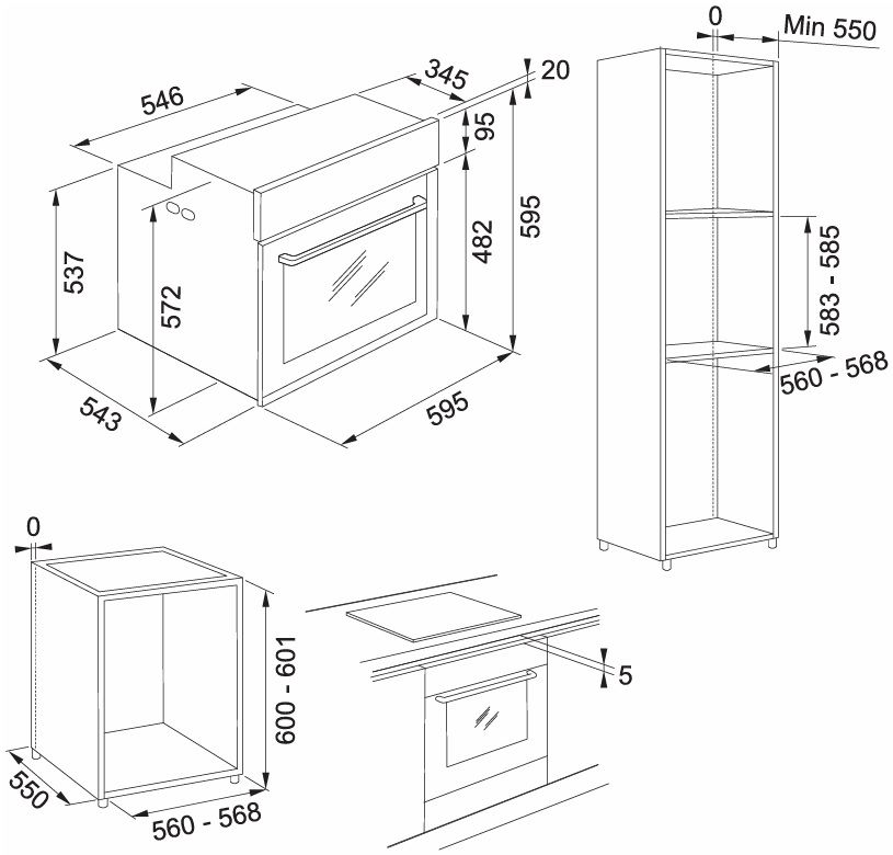 - Размеры прибора (ШxВxГ): 595x595x564 см.