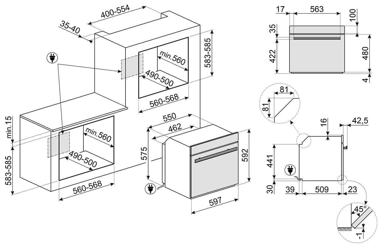- Размеры прибора (ШхВхГ): 597x592x548 мм.