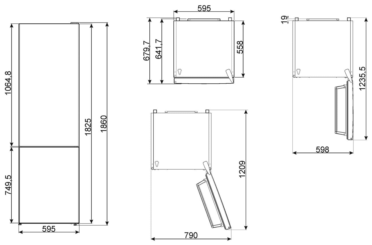 - Размеры прибора (ШxВxГ): 595х1860x650 мм.
