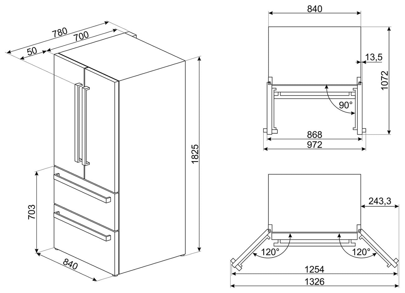- Размеры прибора (ШxВxГ): 840х1825x790 мм.
