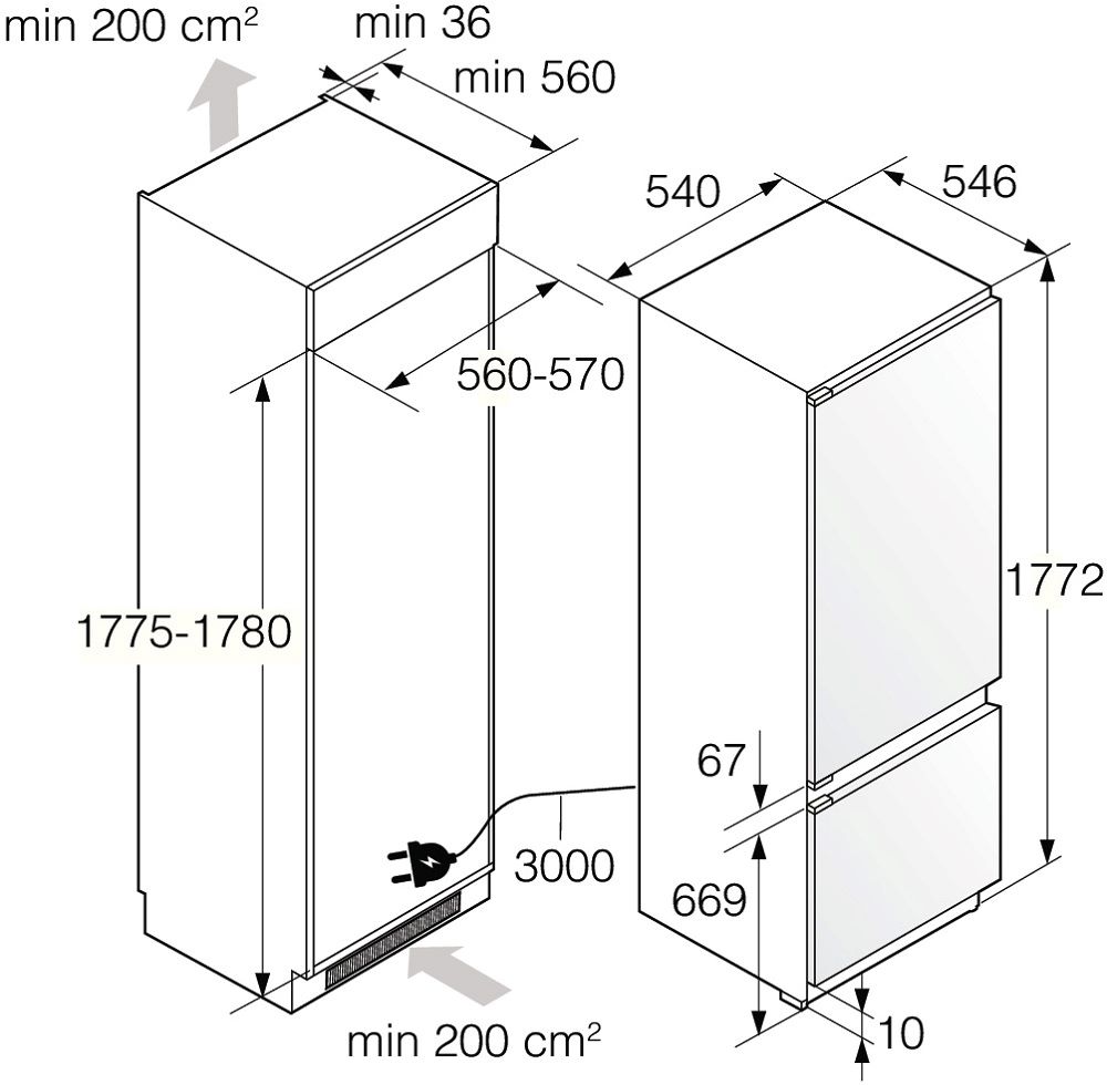 - Максимальная высота ниши для встраивания: 1780 мм.