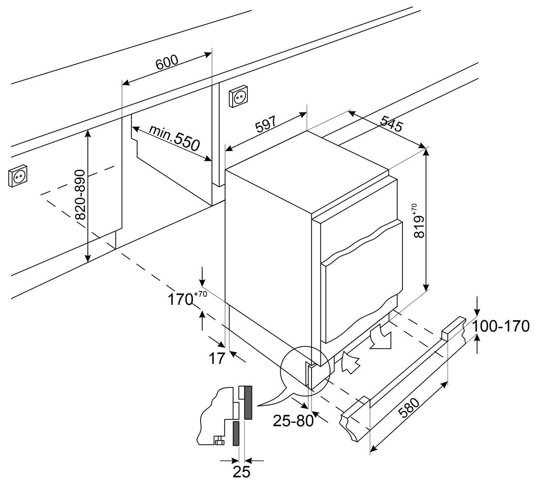 - Размеры прибора (ШхВхГ): 596х819x547 мм.