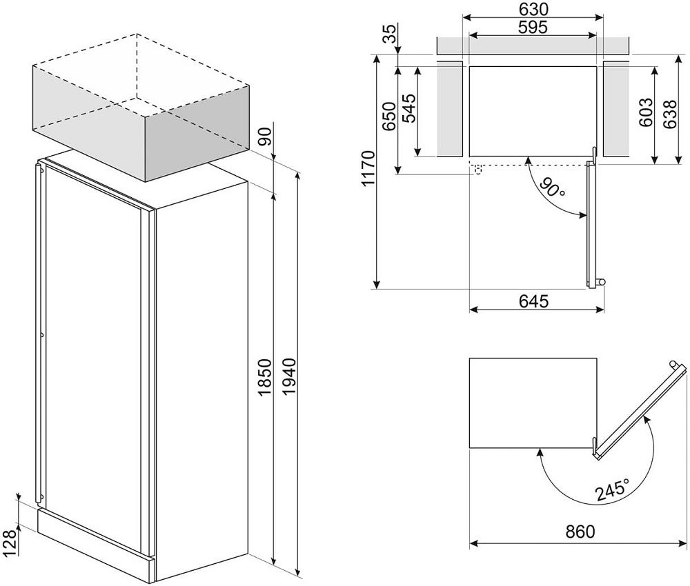 - Размеры прибора (ШхВхГ): 595х1850x595 мм.