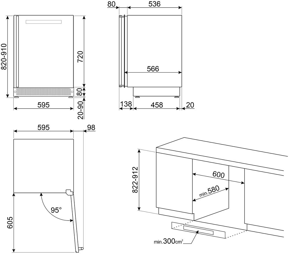 - Размеры прибора (ШхВхГ): 595х825x566 мм.