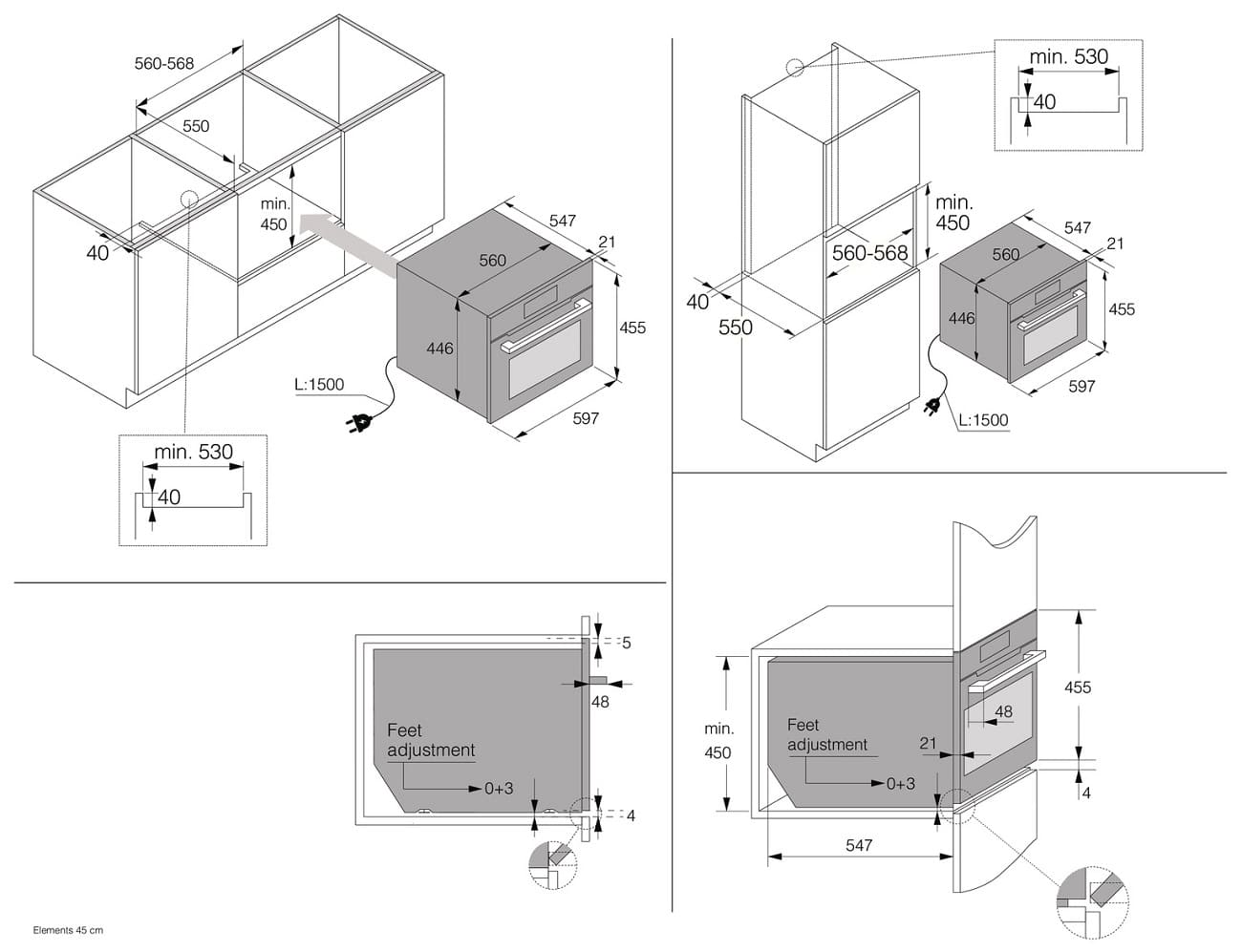 - Размеры ниши для встраивания (ШхВхГ): 560х450х550 мм.